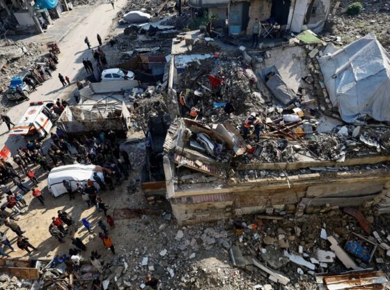 Rescuers from the Civil Defense in Gaza recovered the bodies of 77 members of the same family after Israeli bombings in the Rimal neighborhood, Gaza City.